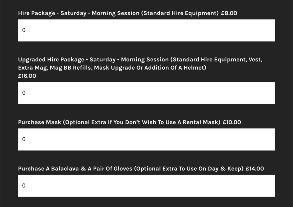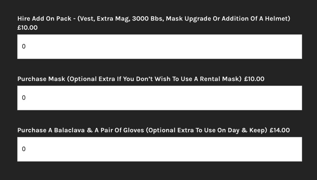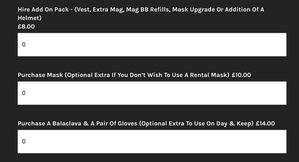 Hire Add-on Pack – (Vest, Extra Mag, Mag BB Refills, Mask Upgrade Or Addition Of A Helmet) £8